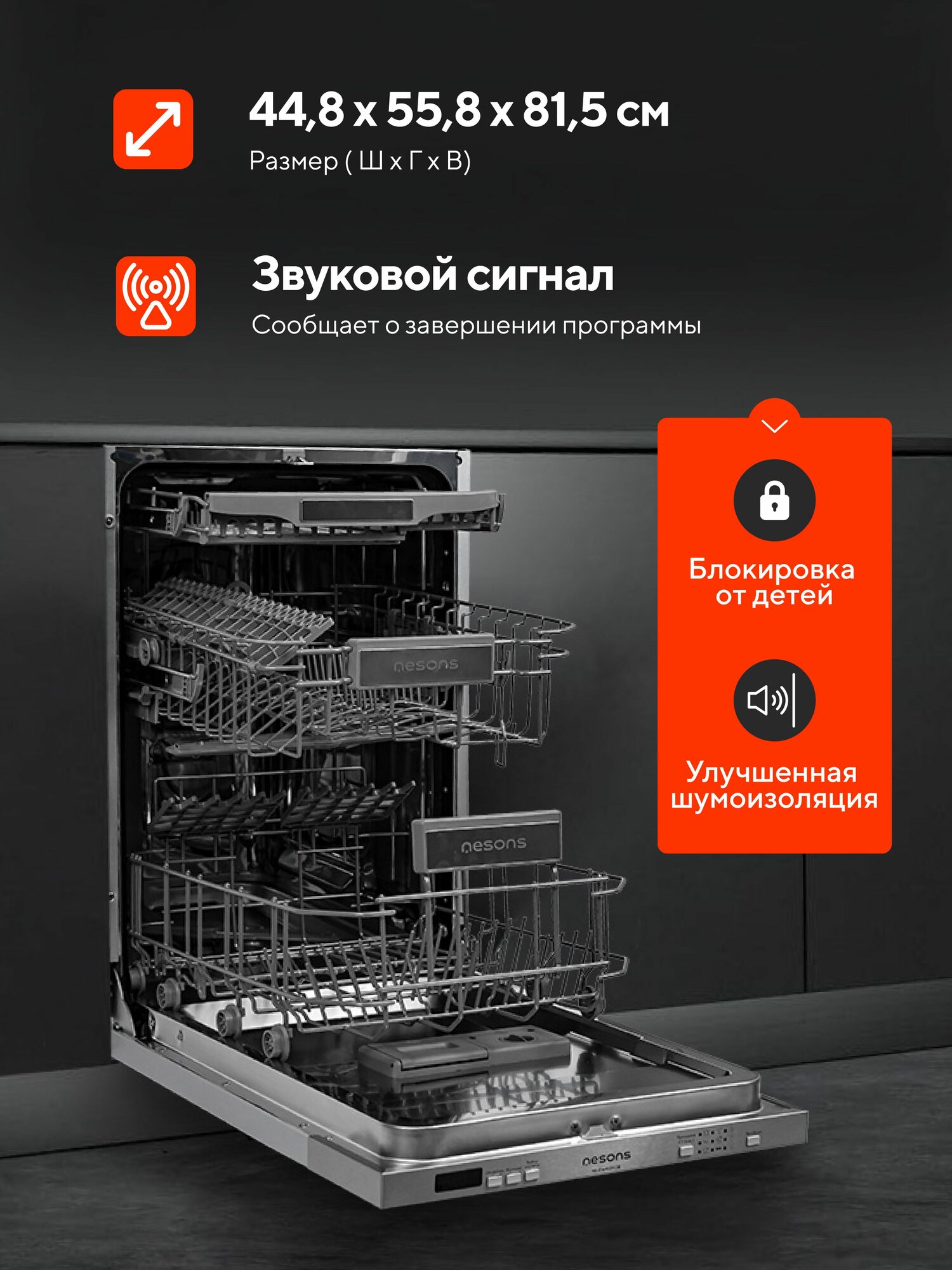 Посудомоечная машина встраиваемая 45 см NESONS NS-DW45DSGB информация: