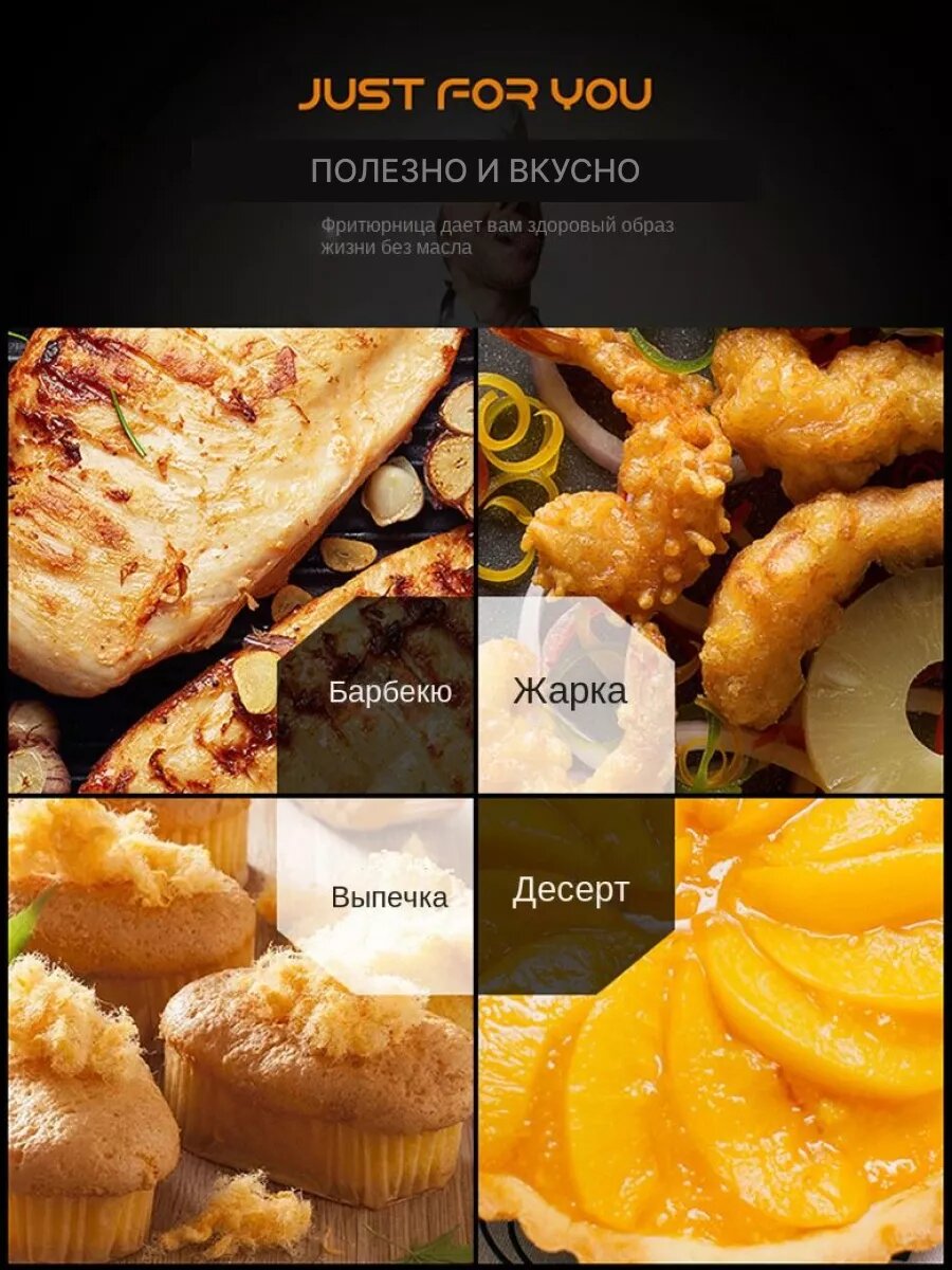 Аэрогриль электрический, электропечь с сенсорным управлением, 1400 Вт, Oulemei