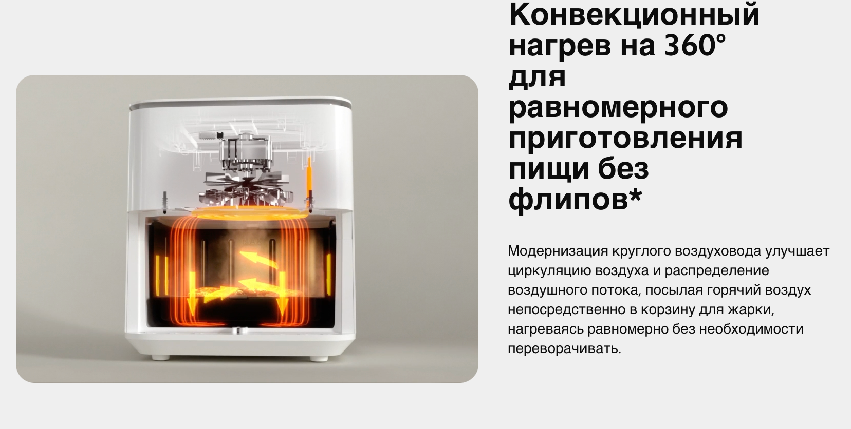 Аэрогриль Mi Smart Air Fryer, 6.5Л, мощность 1800Вт, управление с помощью OLED экрана