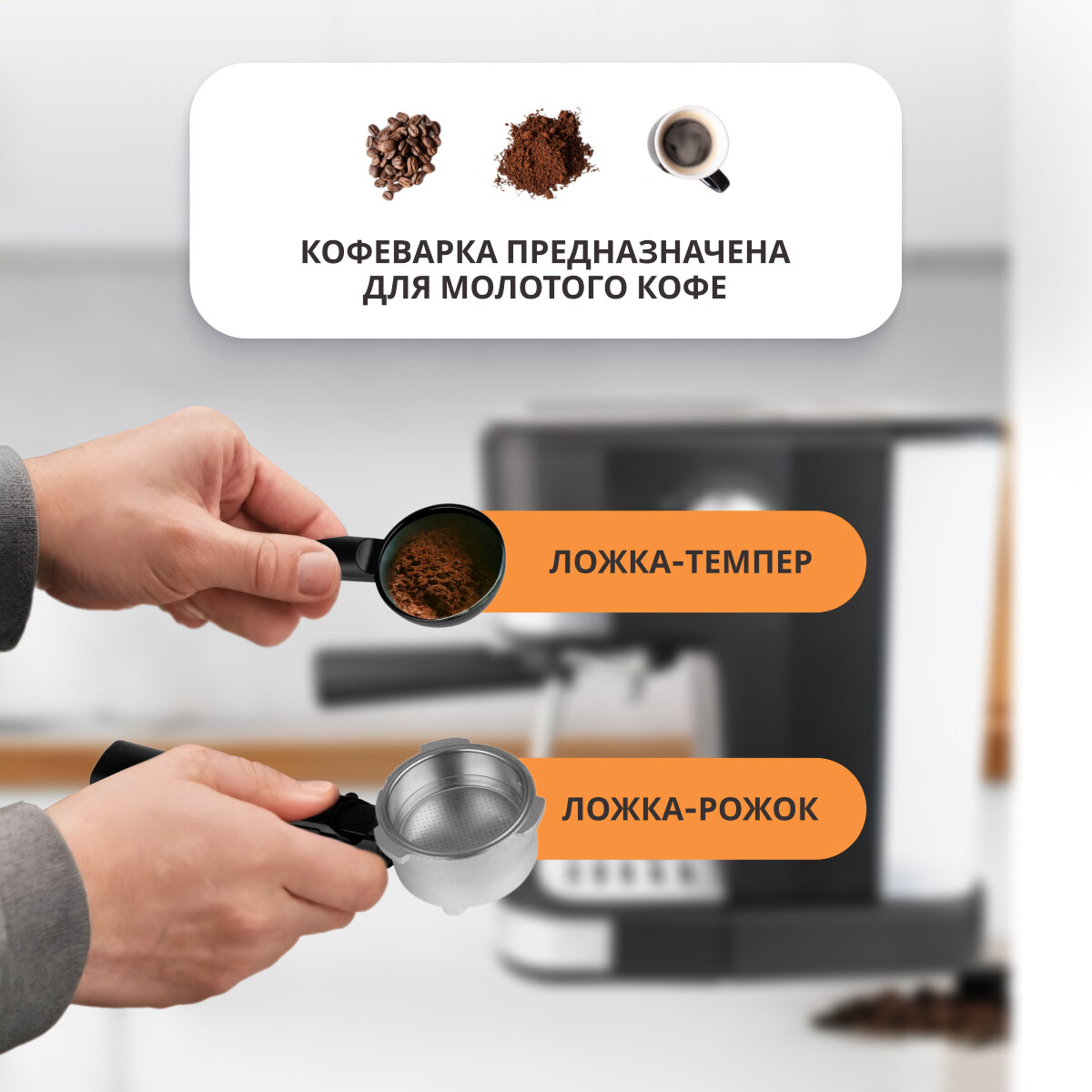 Кофемашина рожковая с капучинатором, кофеварка Centek 3в1 CT-1171, черный информация: