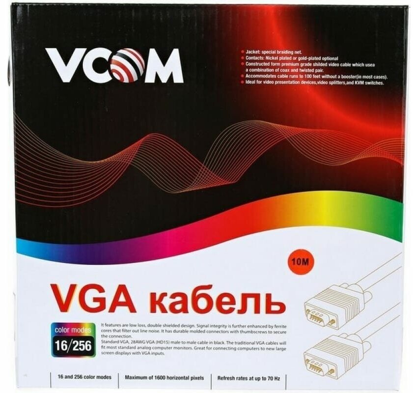 10 цен на Кабель удлинительный Vcom Монитор-SVGA card (15M-15F) 10m, 2 фильтра (VVG6460-10M)