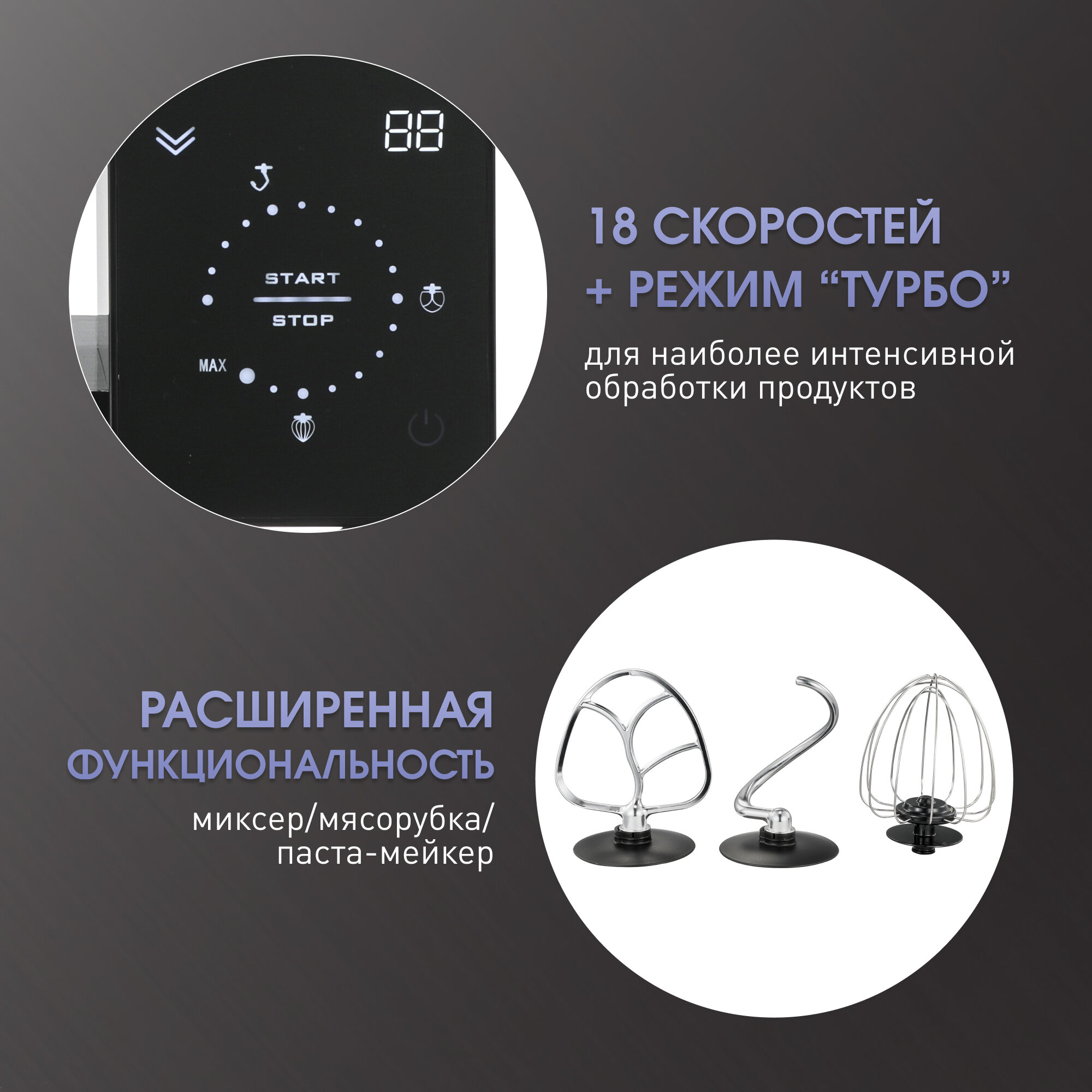 | Дополнительные насадки | венчик для взбивания / Для замешивания теста / Мясорубка |