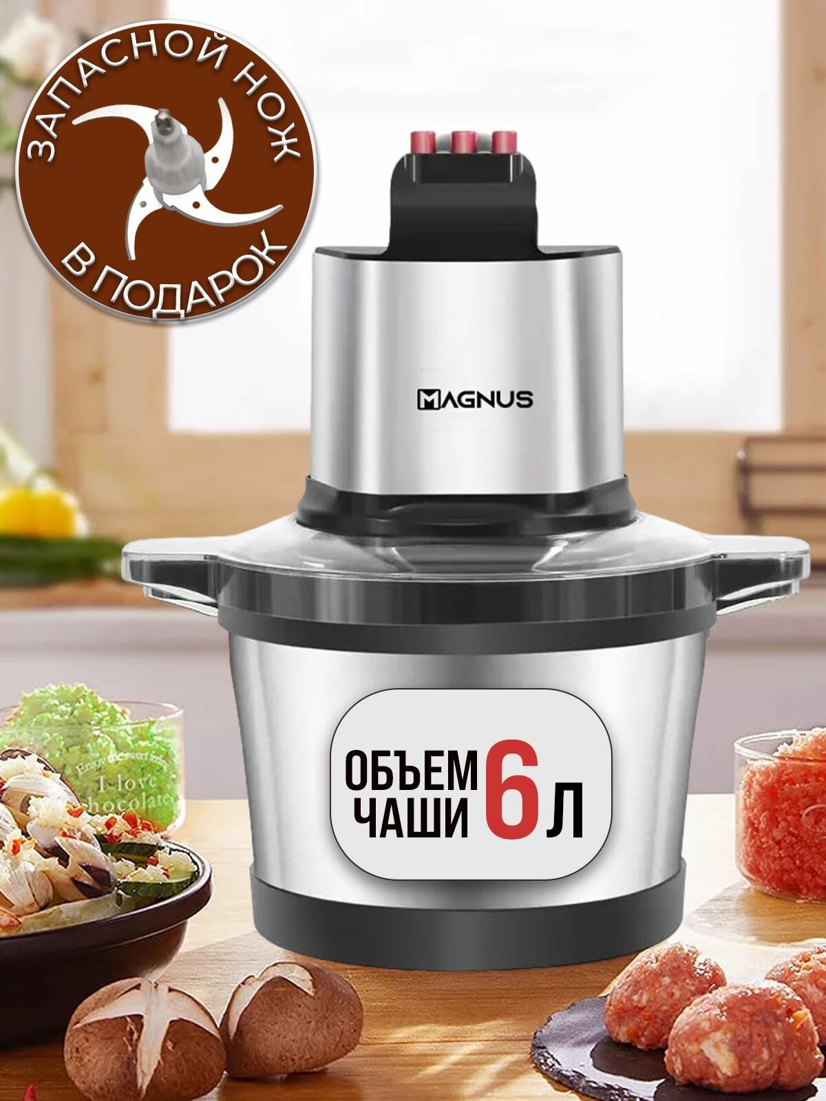 Отзывы на MAGNUS / Измельчитель-мясорубка электрический M6-3. Мощность 1500 Вт. Чаша из нерж. стали 6 л. 3 скорости. Запасной нож в подарок
