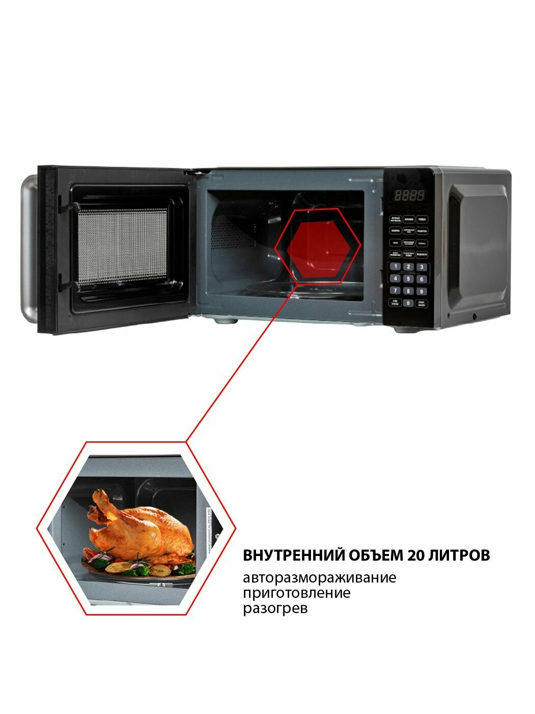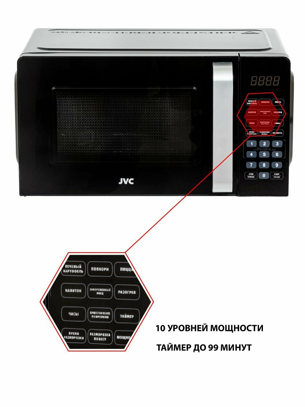 Микроволновая печь JVC JK-MW367S / 20 литров с таймером до 99 минут, 10 уровней мощности, 6 автоматических программ приготовления, 700 Вт информация: