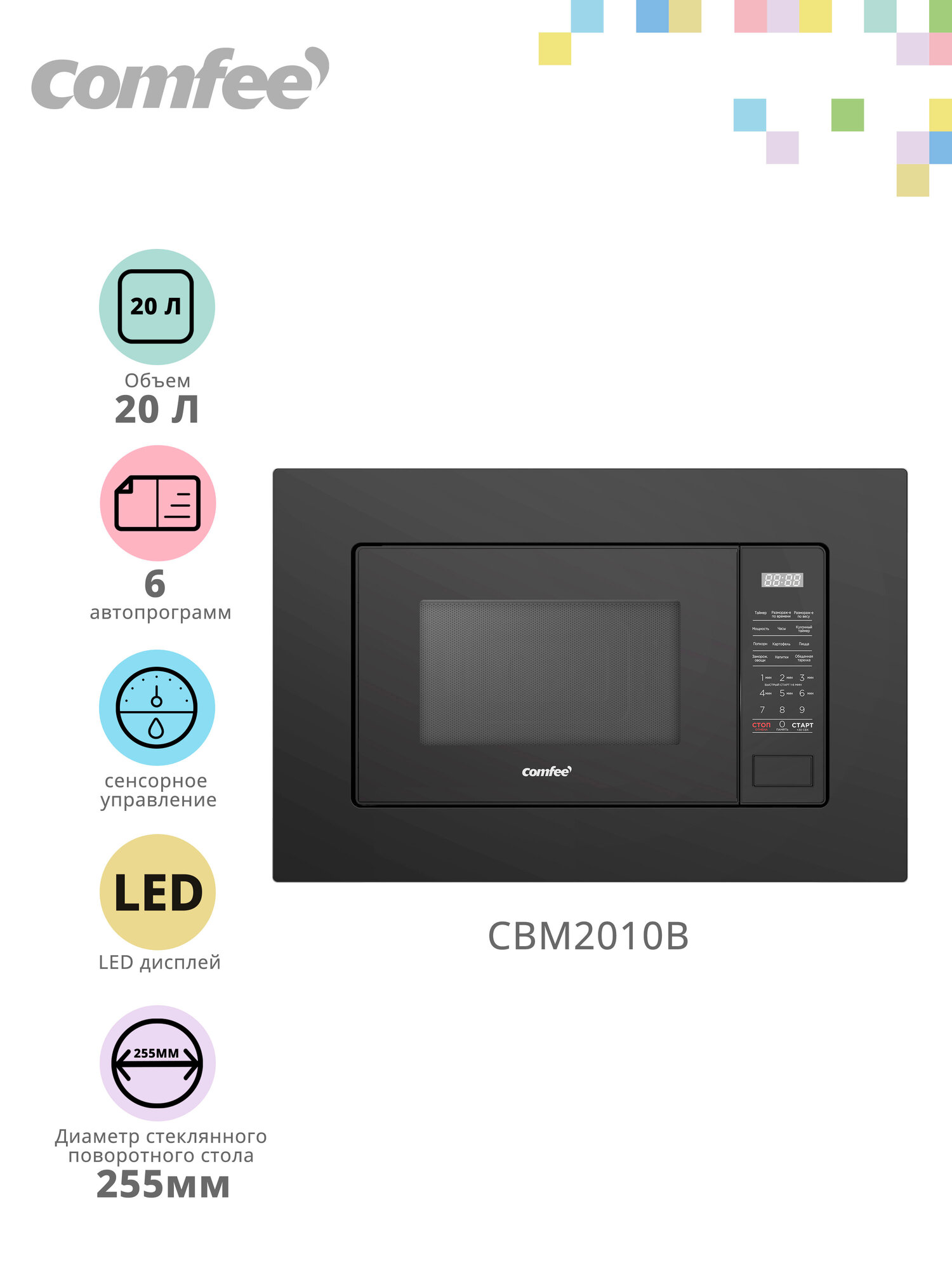 Встраиваемая микроволновая печь Comfee CBM2010B информация:
