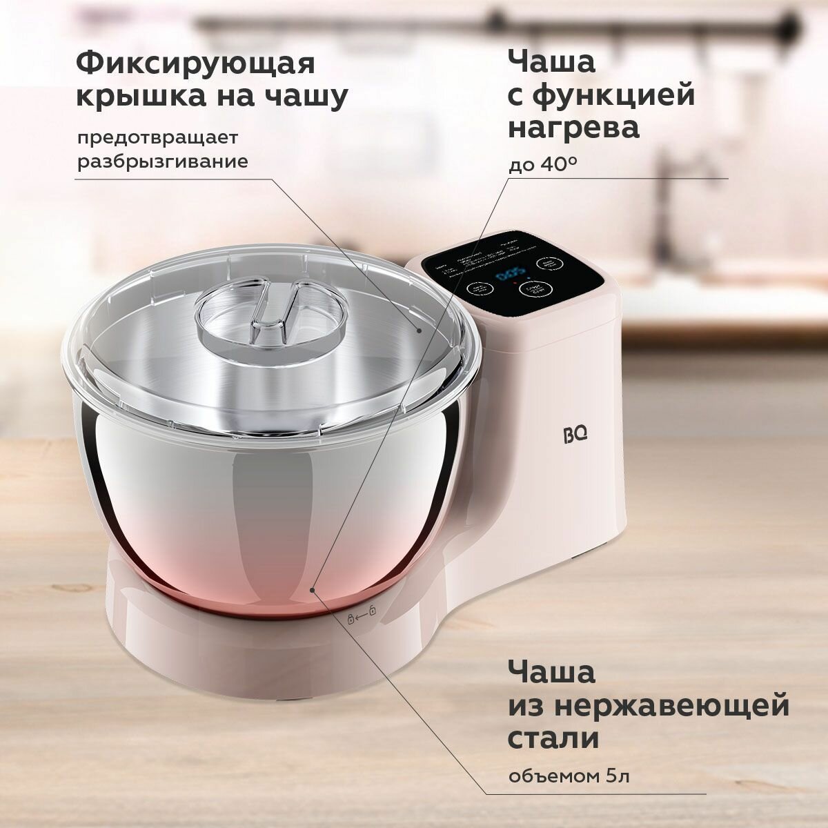 Тестомес / миксер для теста BQ MX521 Розовый с функцией нагрева чаши информация: