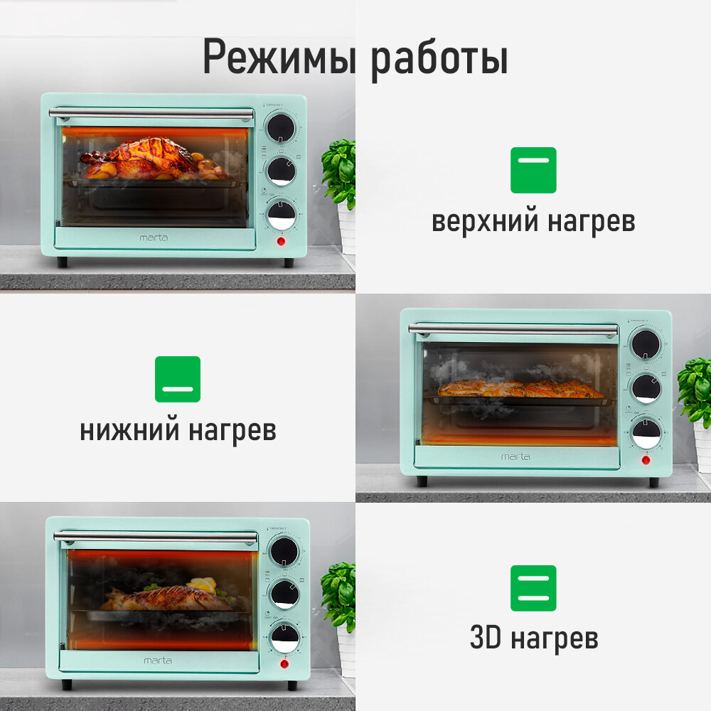 10 цен на Мини-печь MARTA MT-EO4283A (18 литров, гриль) светлая яшма