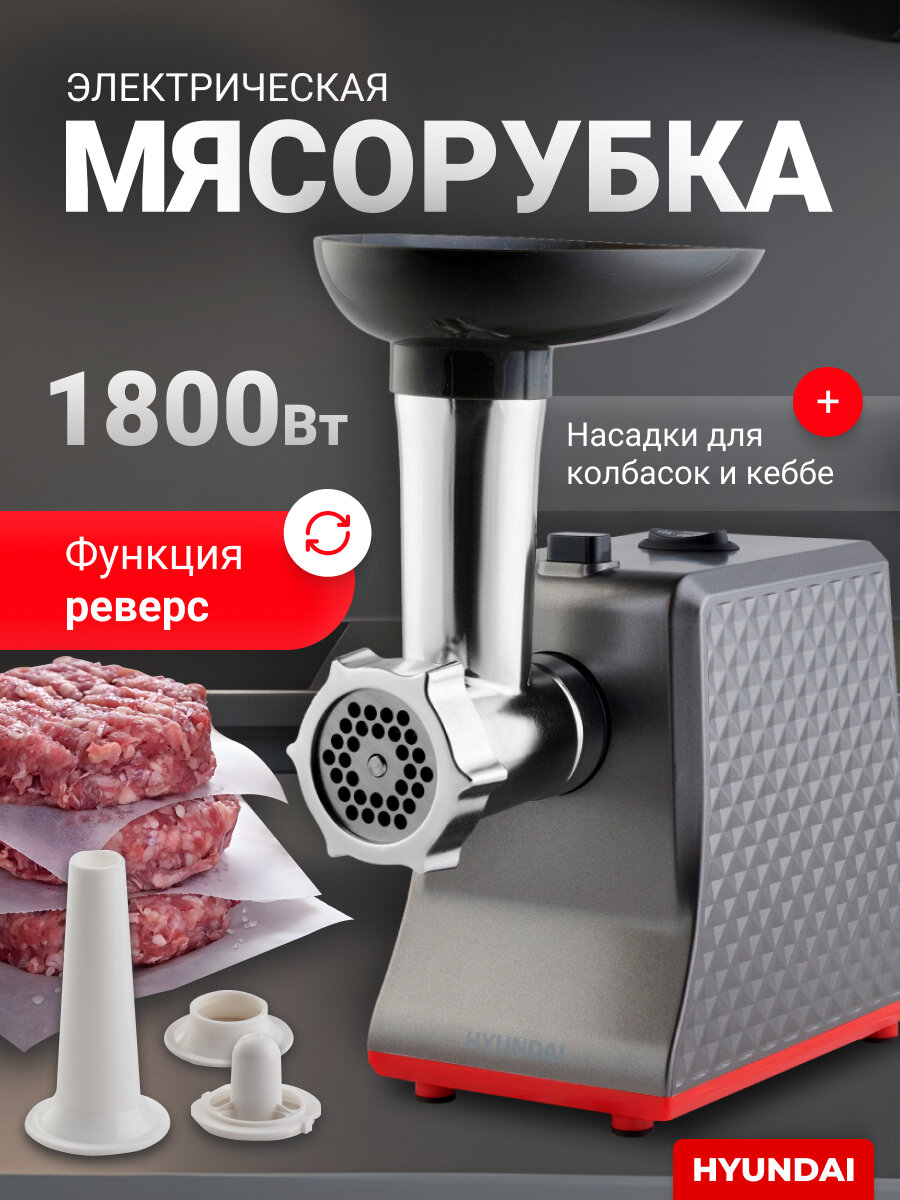 Мясорубка Hyundai HY-MG2114 1800Вт графит/серебристый, 2 насадки