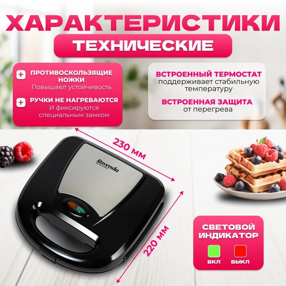 | Особенности | антипригарное покрытие, возможность смены панелей, защита от перегрева, индикатор работы |