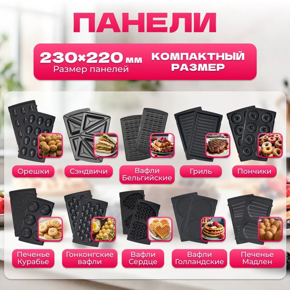 10 цен на Мультипекарь для приготовления вафель, Вафельница, сендвичница электрическая, орешница, гриль,10 в 1, индикатор нагрева,1500Вт, черный