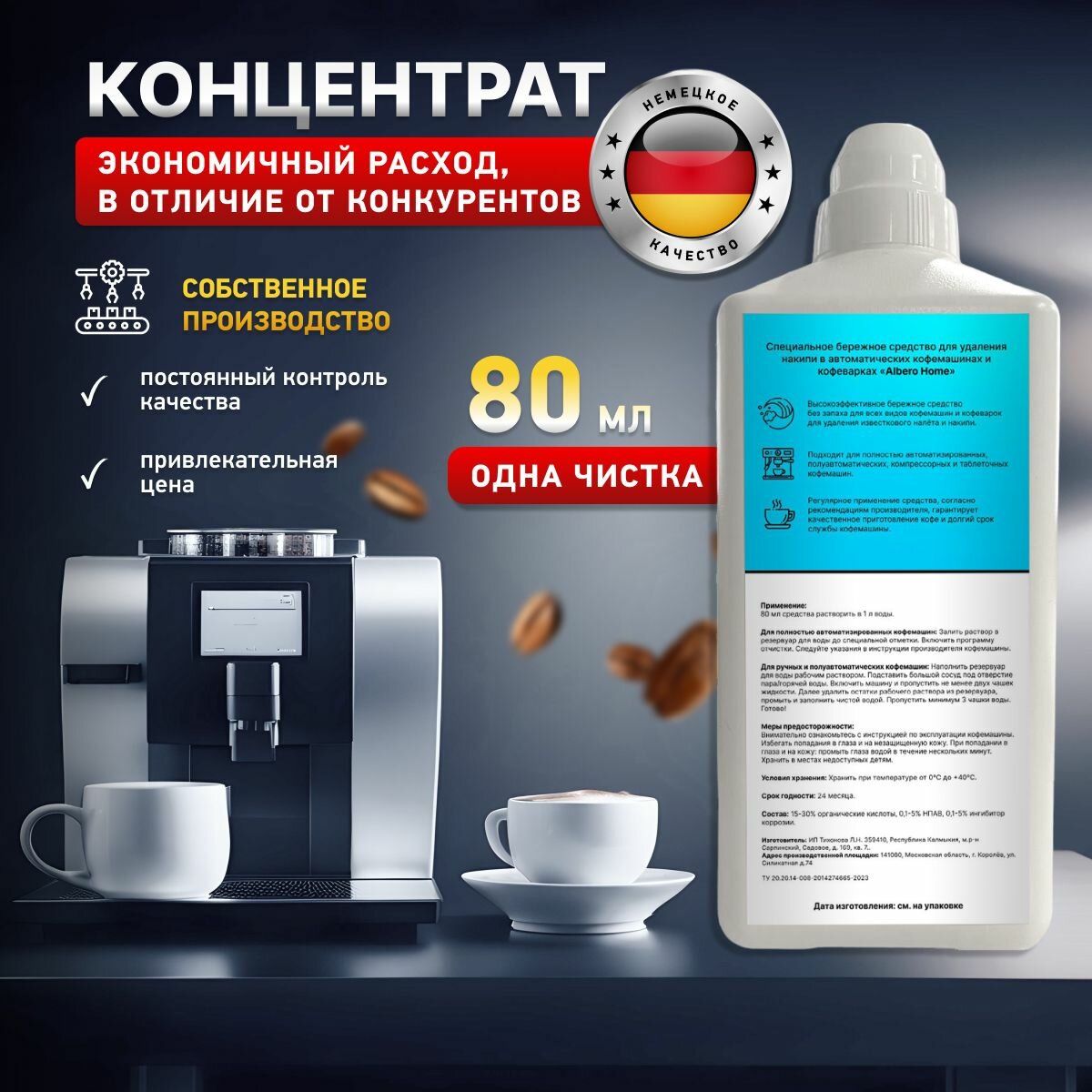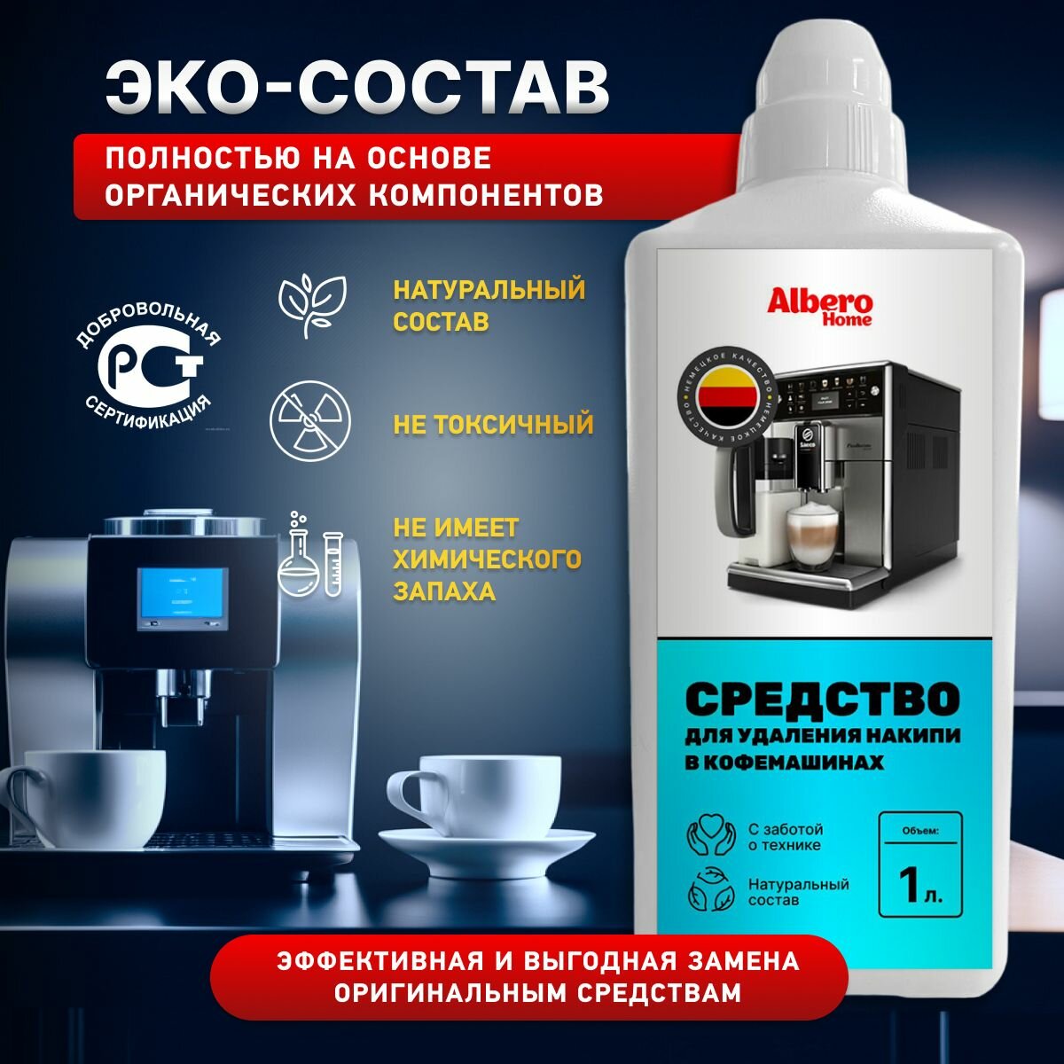 Средство для чистки кофемашины от накипи для всех марок 1 литр информация: