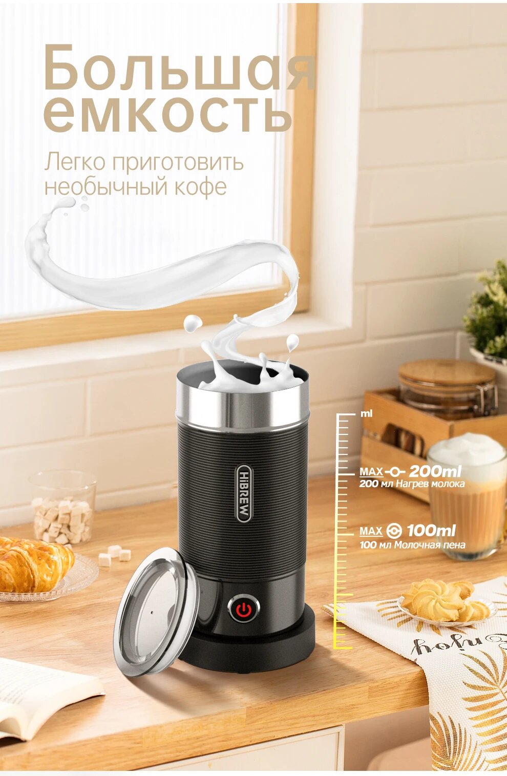 Hibrew M1A 4 в 1 вспениватель молока пенообразователь полностью автоматический подогреватель молока,черный информация:
