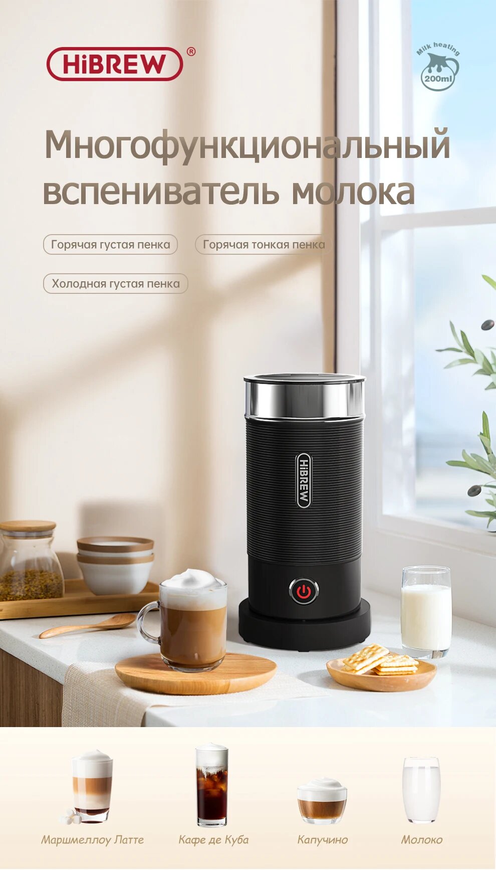 Отзывы на Hibrew M1A 4 в 1 вспениватель молока пенообразователь полностью автоматический подогреватель молока,черный