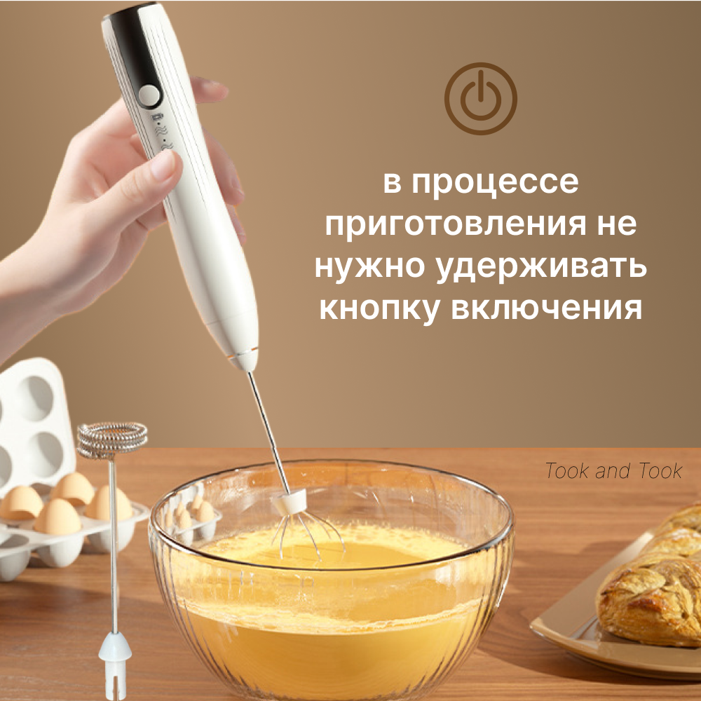 Капучинатор электрический ручной вспениватель для молока на подставке белый информация: