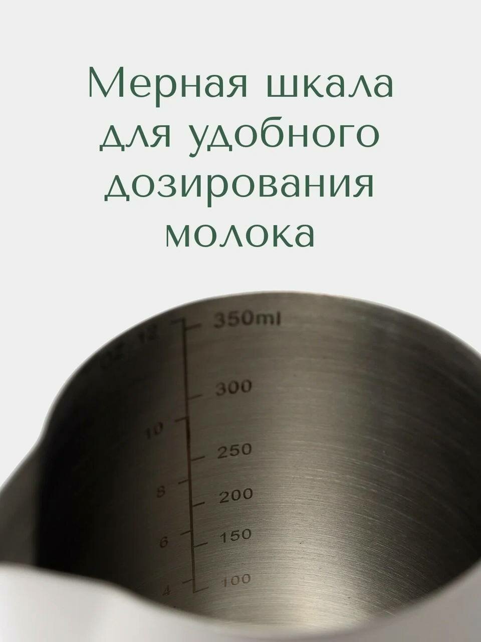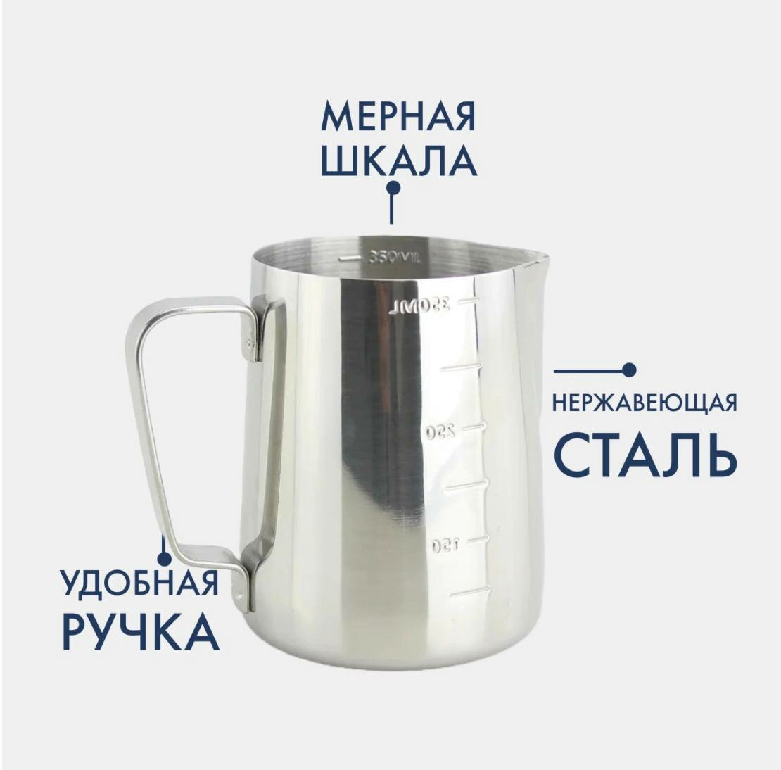 Молочник питчер 350 мл с разметкой, прямой формы из нержавеющей стали/для молока 535 ₽