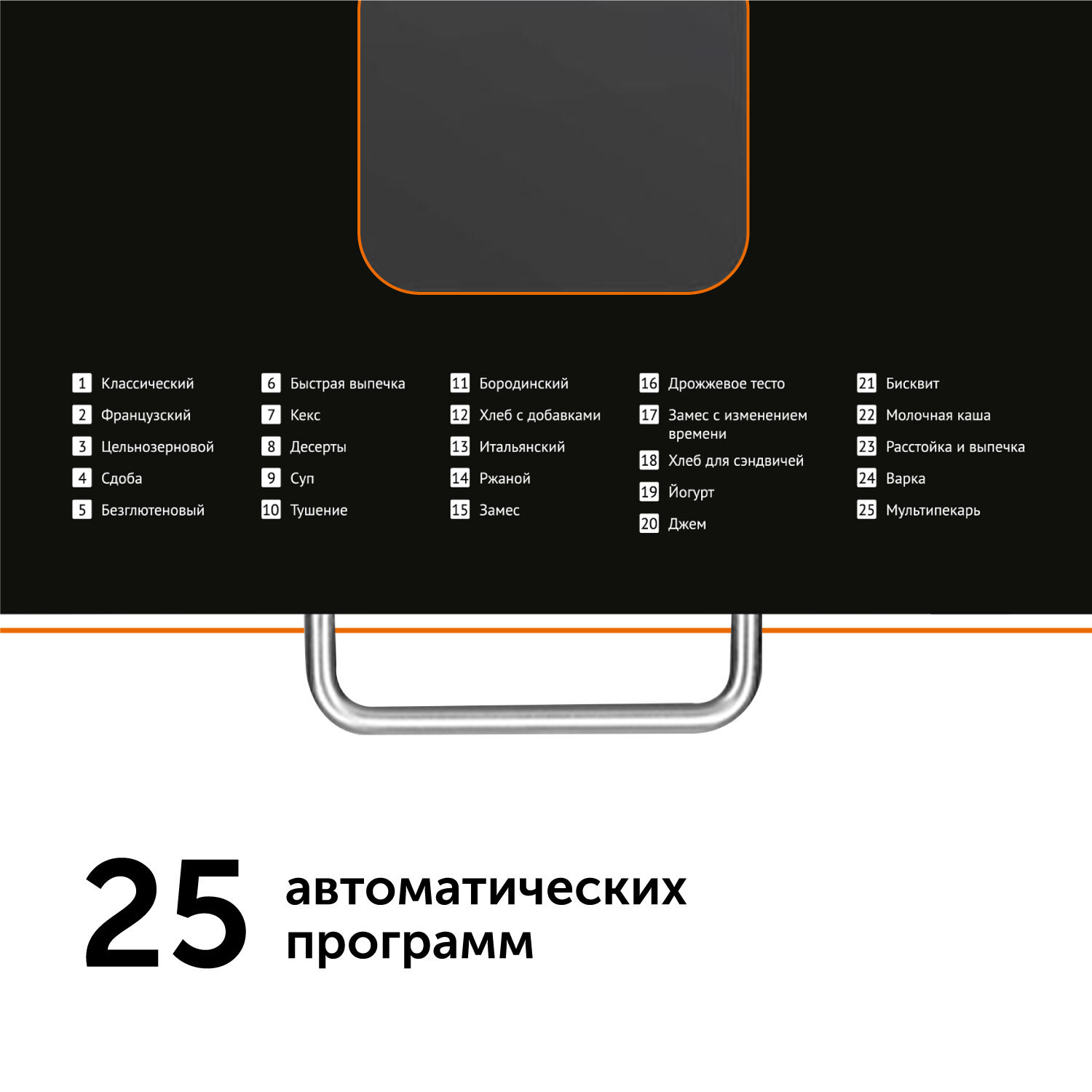 | Количество программ выпечки | 25 |