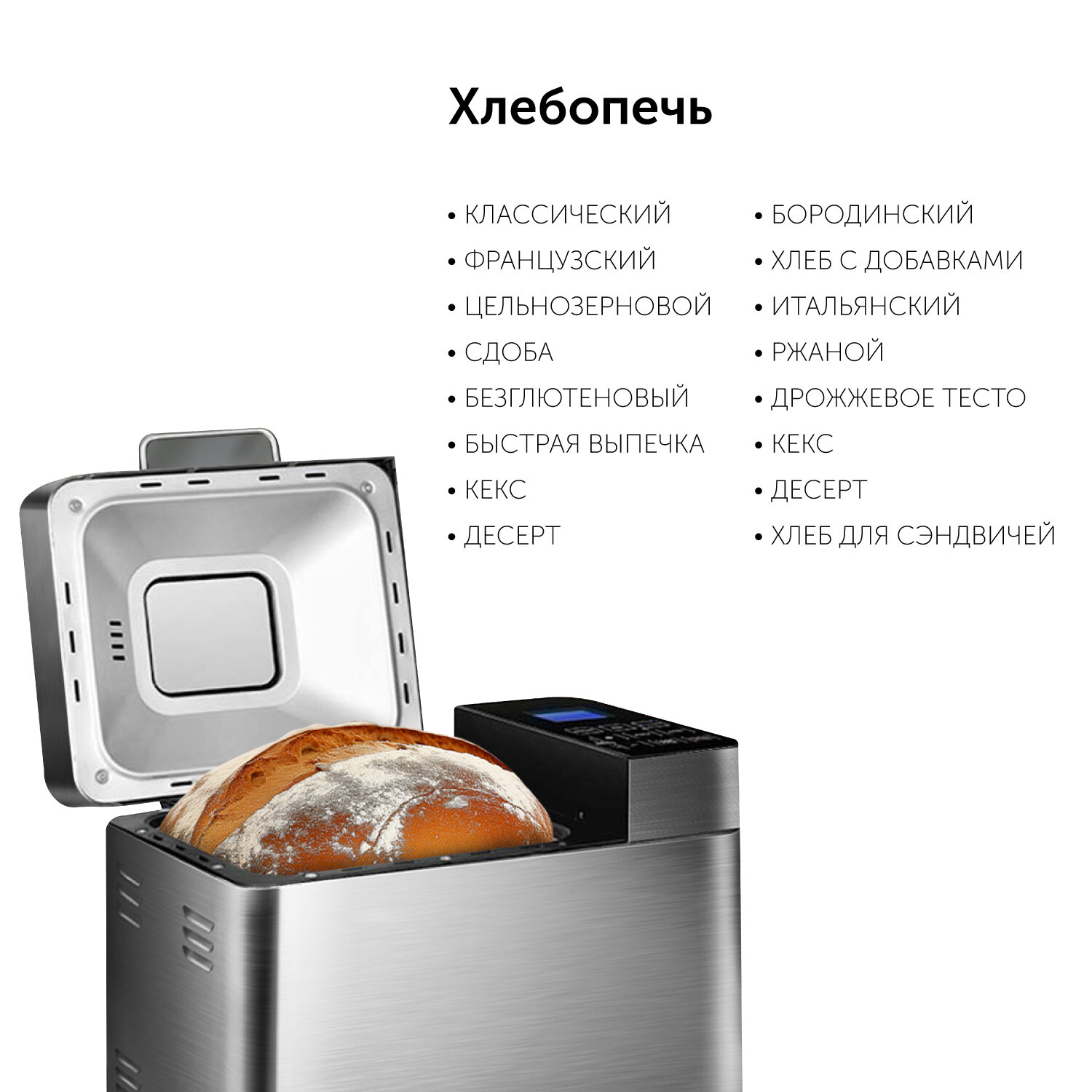 | Особенности | выбор цвета корочки / поддержание температуры / регулировка веса выпечки |