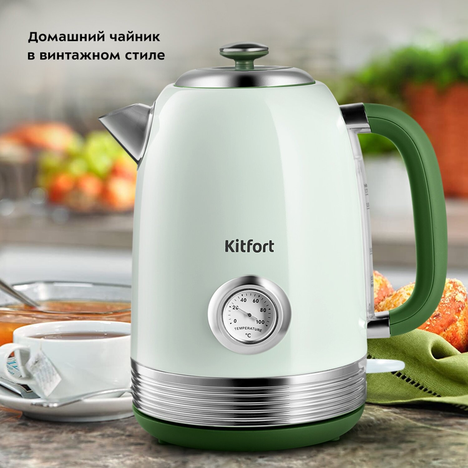 10 цен на Чайник электрический Kitfort КТ-6604, металл, 1.7 л, 2200 Вт, зелёный
