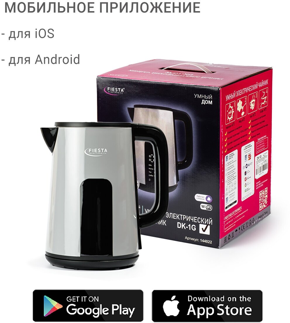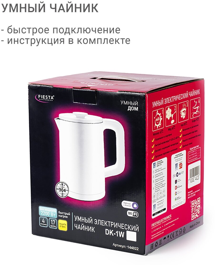 10 цен на Умный электрический чайник Fiesta DK-1G Wi-Fi (работает с Алисой, TUYA, SmartLife)