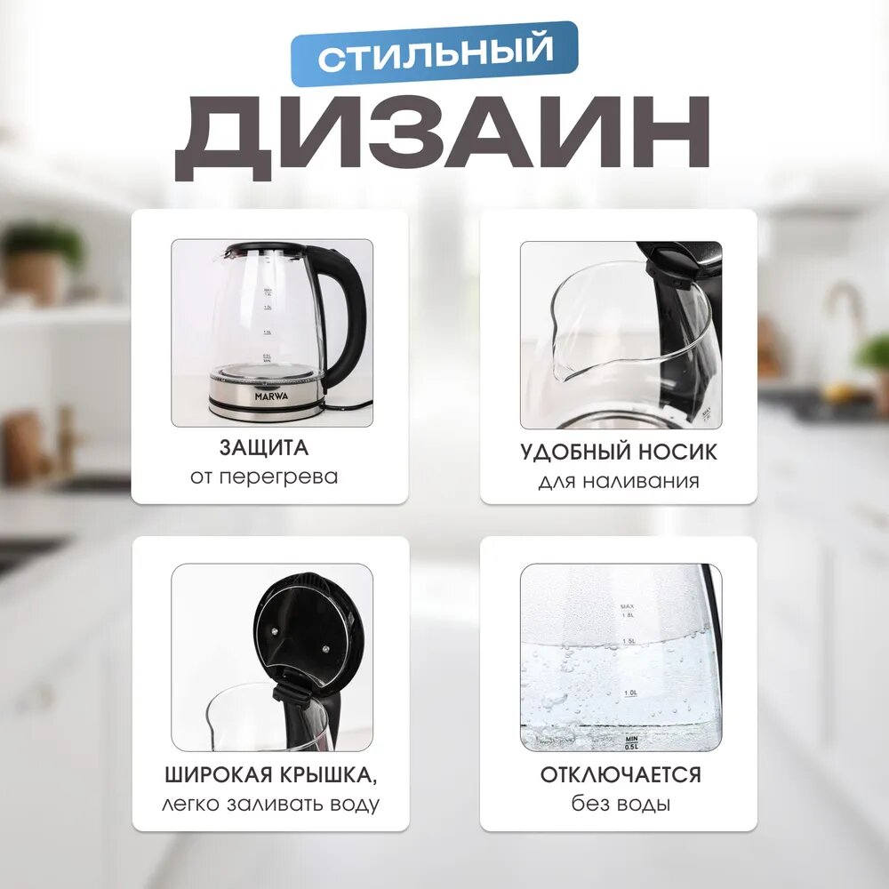 10 цен на Чайник стеклянный электрический MARWA с LED-подсветкой 1,8 литра