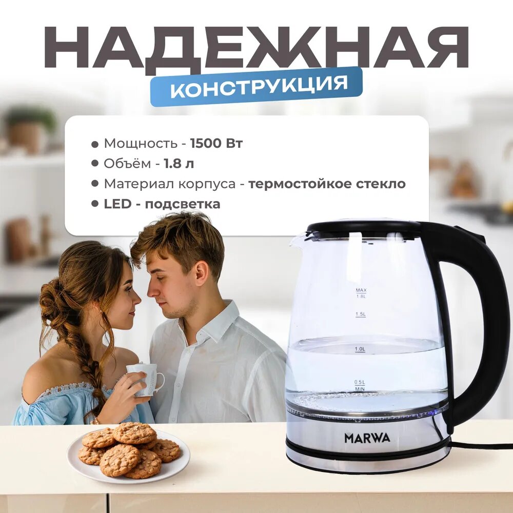 Чайник стеклянный электрический MARWA с LED-подсветкой 1,8 литра информация: