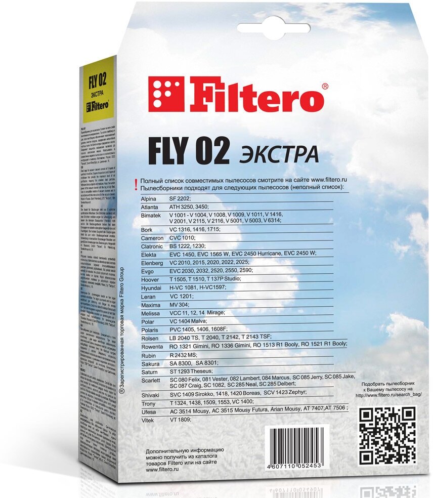 Мешки-пылесборники Filtero FLY 02 Экстра, для пылесосов Rowenta, Polaris, синтетические, 4 штуки информация: