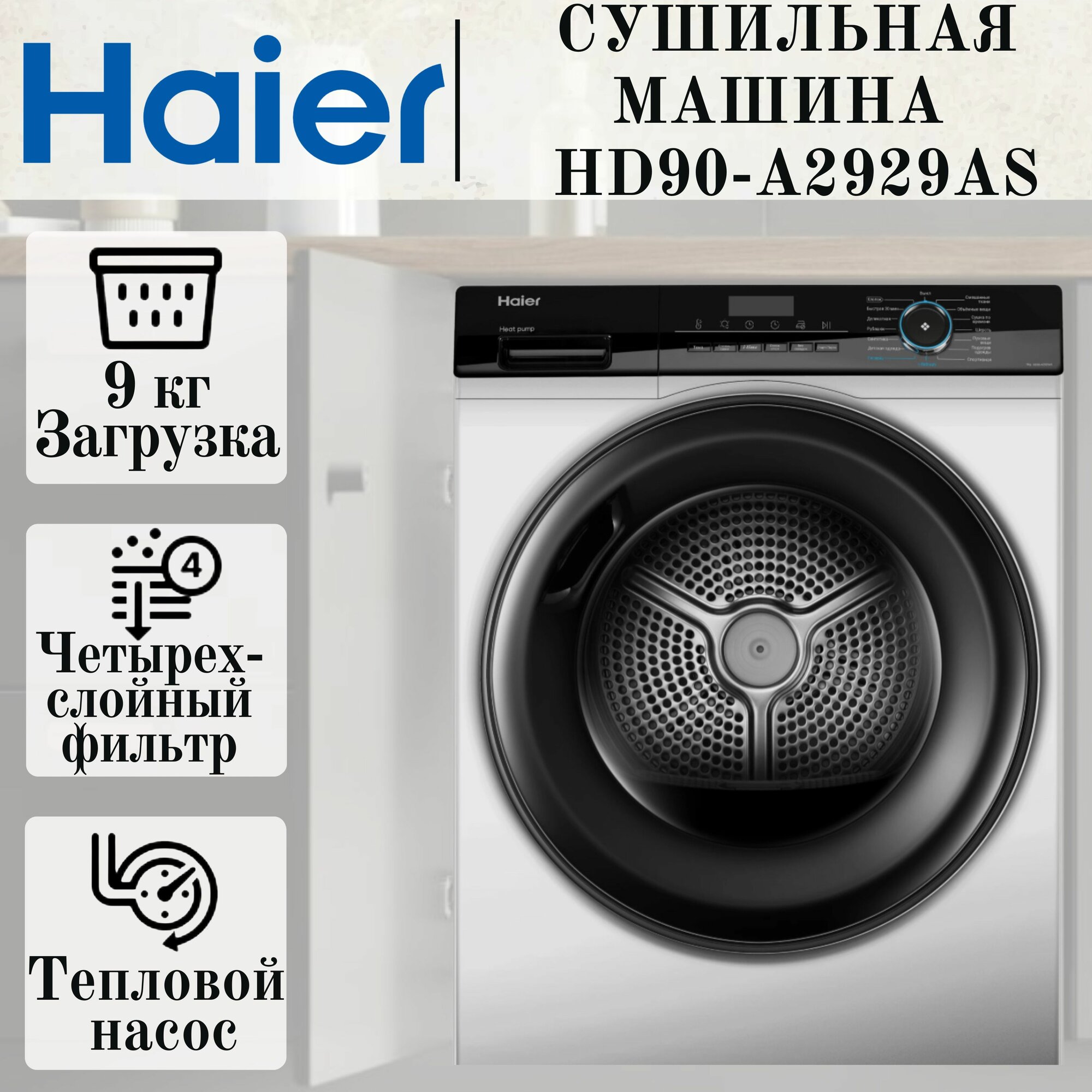 Сушильная машина Haier HD90-A2929AS 9 кг, с тепловым насосом, с фронтальной загрузкой, серебристый информация: