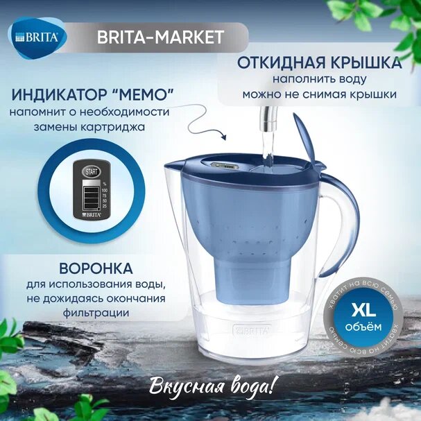 10 цен на Фильтр- кувшин для воды BRITA Marella Синий 3,5 л и 1 картридж MAXTRA+