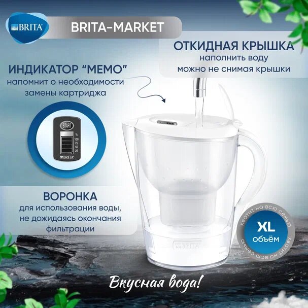10 цен на Фильтр- кувшин для воды BRITA Marella Белый 2,4 л и 3 картриджа MAXTRA+