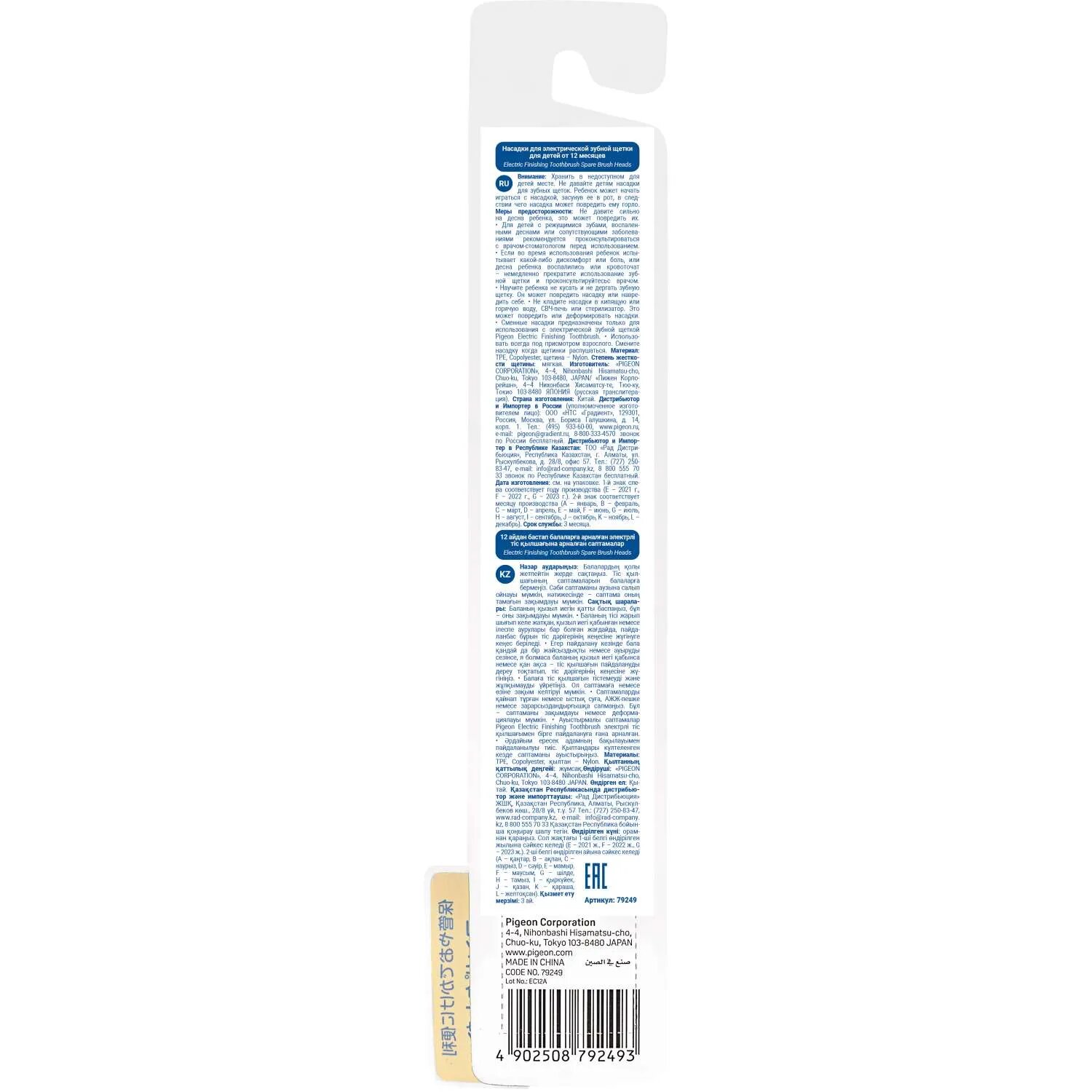 Насадки для электрической зубной щетки Pigeon для детей от 12 месяцев, мягкие (79249) информация: