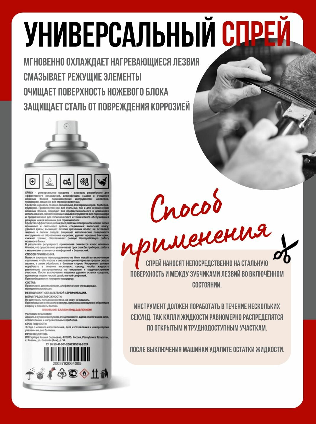 Охлаждающий барбер спрей для машинок, ножевых блоков информация: