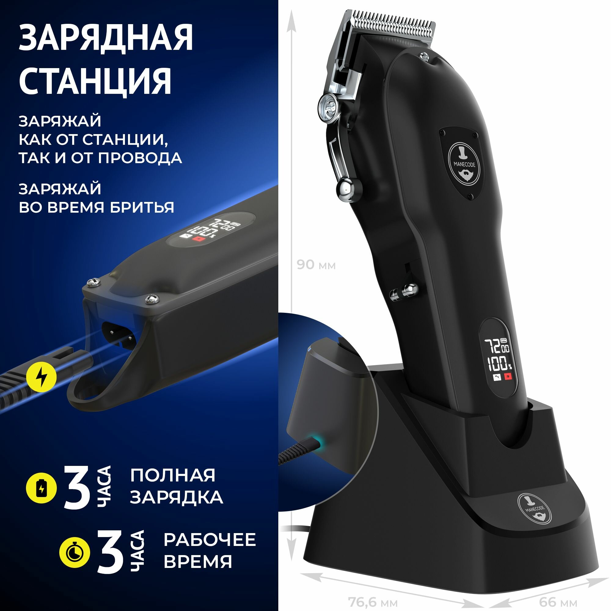 Машинка для стрижки волос Manecode EXCALIBUR c 10 насадками от 0,5 до 25 мм и зарядной станцией - Профессиональные твердосплавные самозатачивающиеся регулируемые лезвия - Фирменный фартук в комплекте информация: