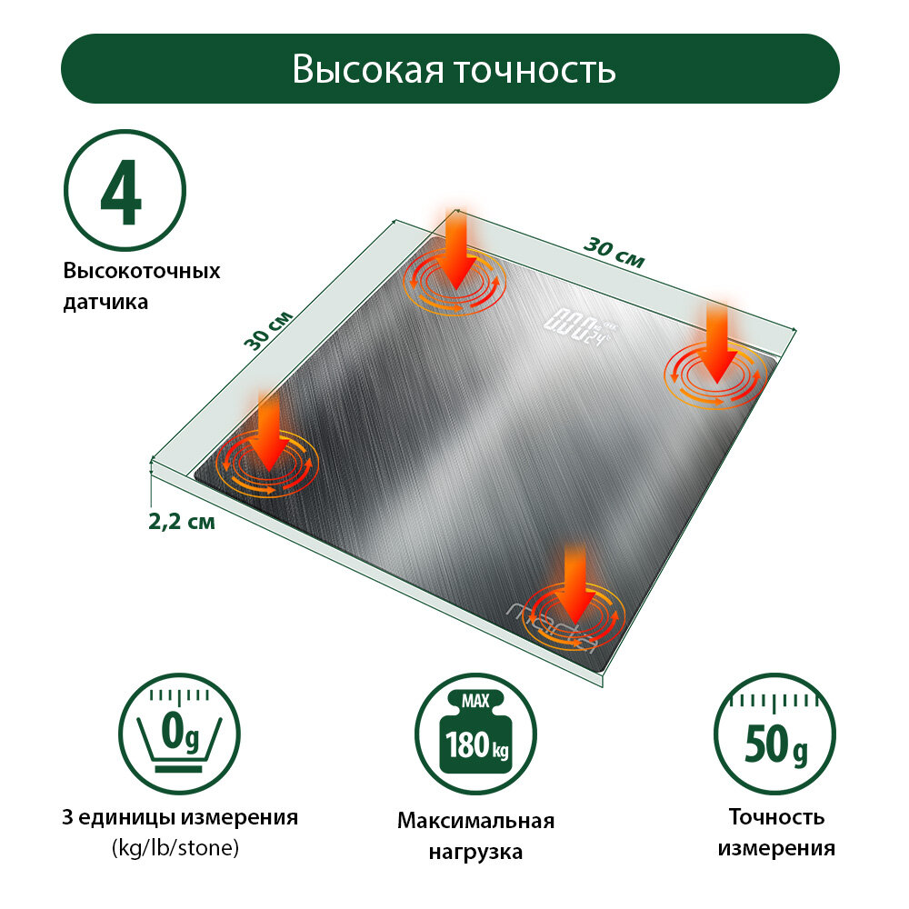 | Дополнительные функции | измерение температуры воздуха / определение доли жировой ткани / определение доли костной ткани / определение доли мышечной ткани / память |
