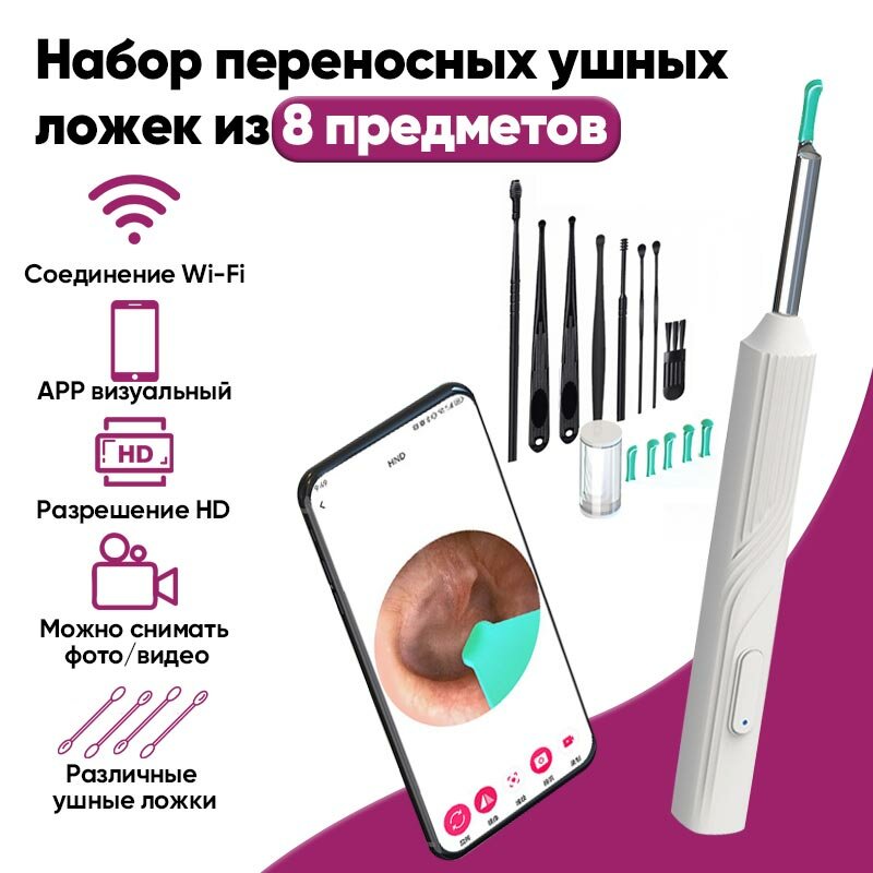 Отзывы на умная ушная палочка, ушная палочка с камерой, чистка ушей, Набор переносных ушных ложек из 8 предметов