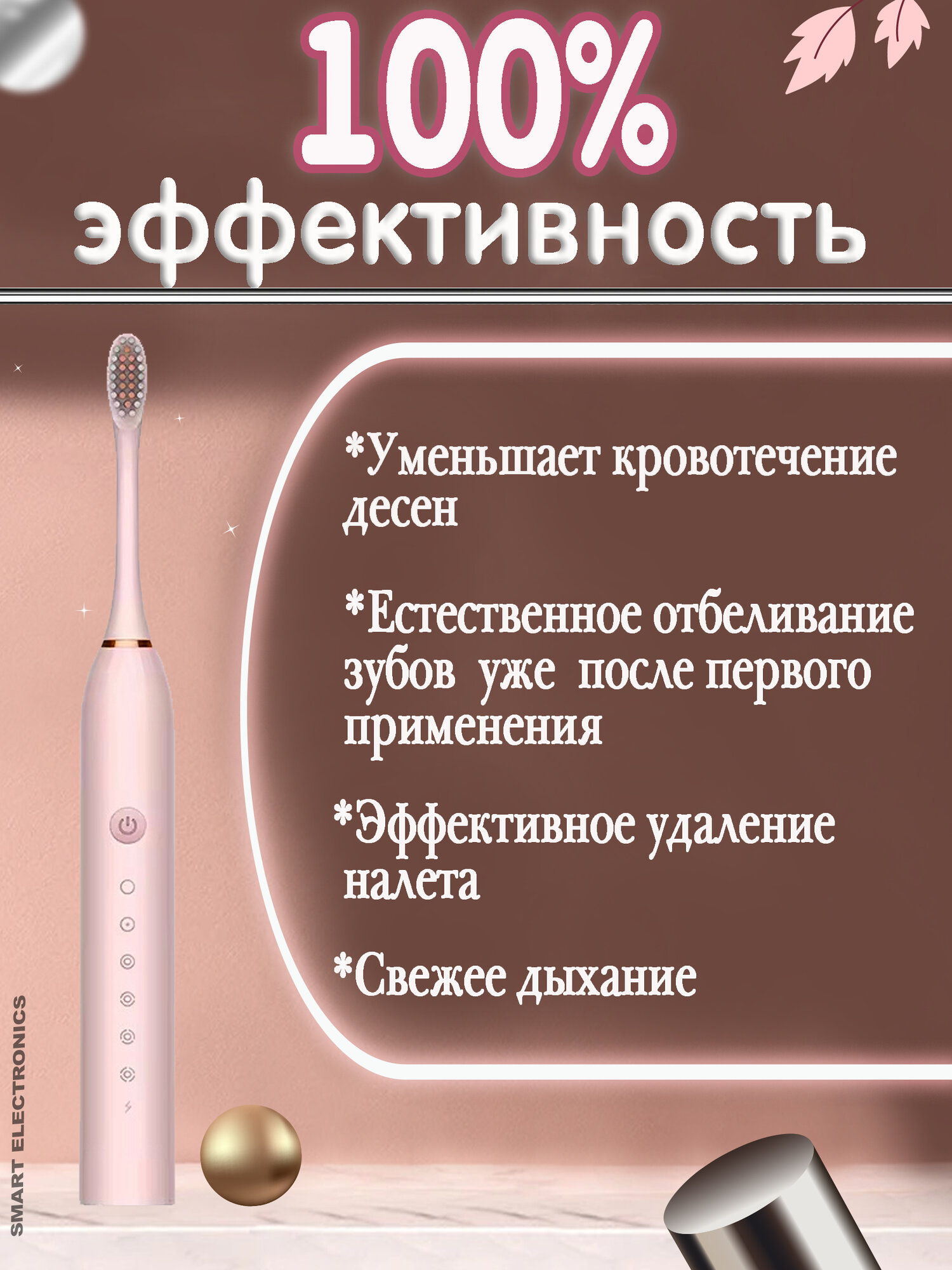 Электрическая ультразвуковая зубная щетка X7 SONIC Toothbrush 4 сменные щетки 6 режимов работы розовый