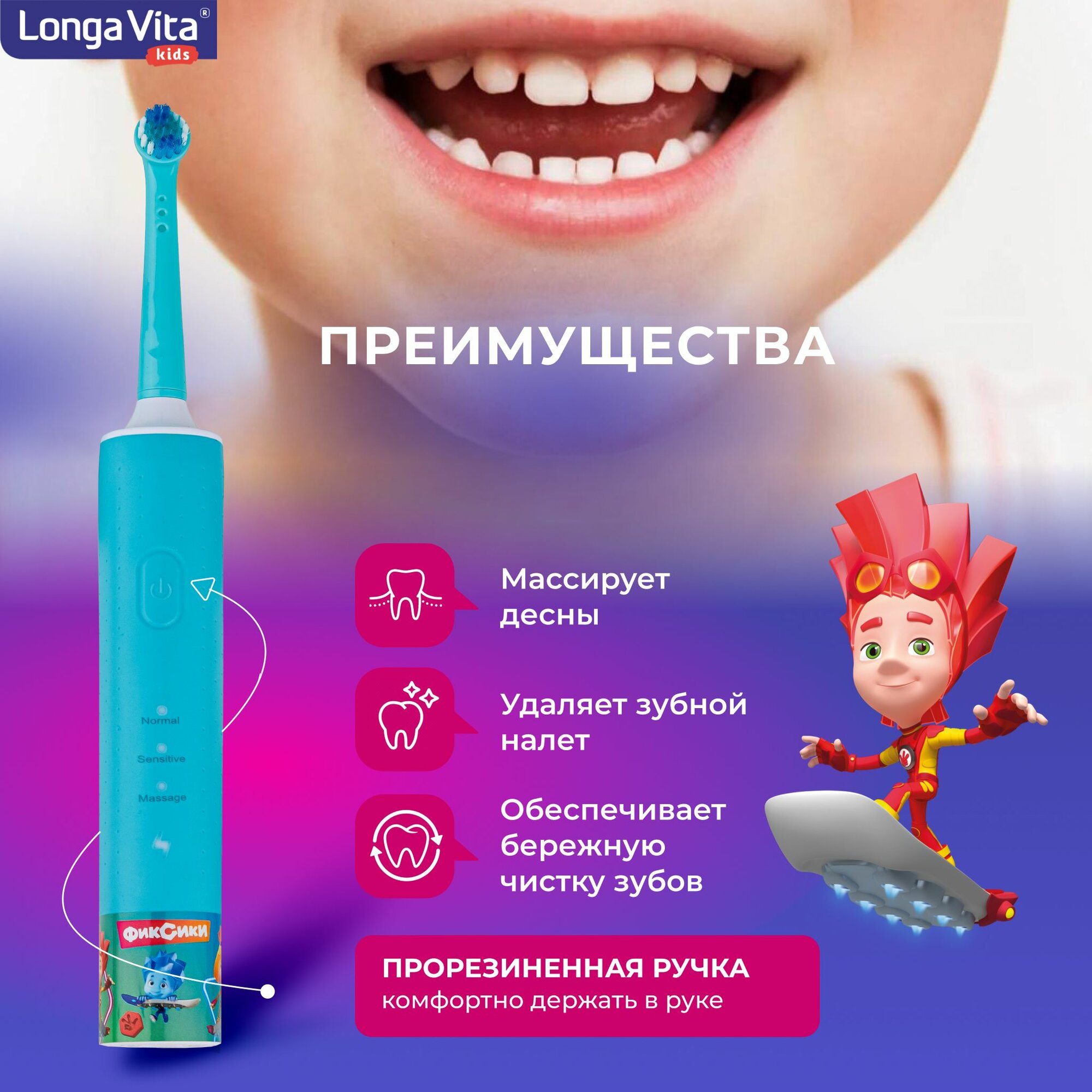 Электрическая зубная щетка Longa Vita Фиксики (ST-03) информация: