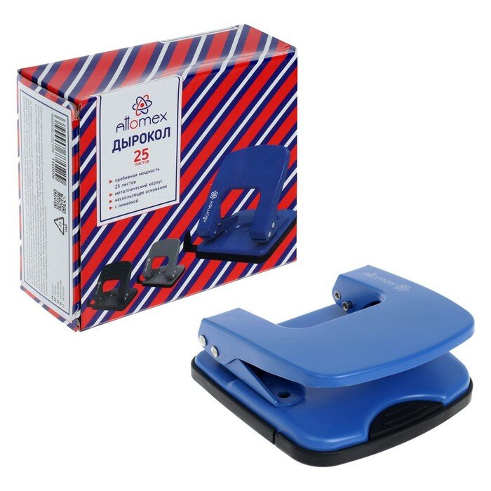 Дырокол металлический 25 листов, Attomex, форматная линейка, синий информация: