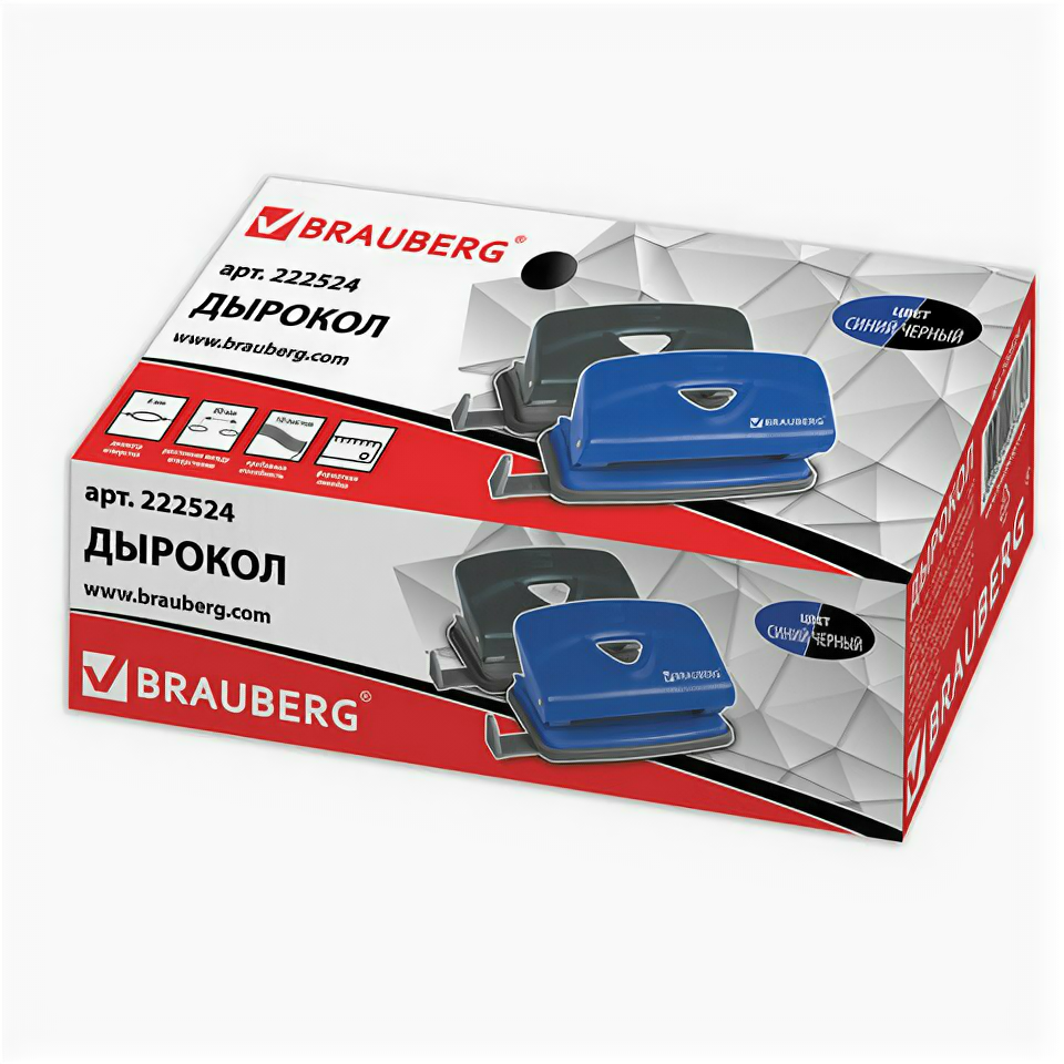 10 цен на Дырокол металлический BRAUBERG "Universal+" до 10 листов ассорти (синий /черный), 2 шт
