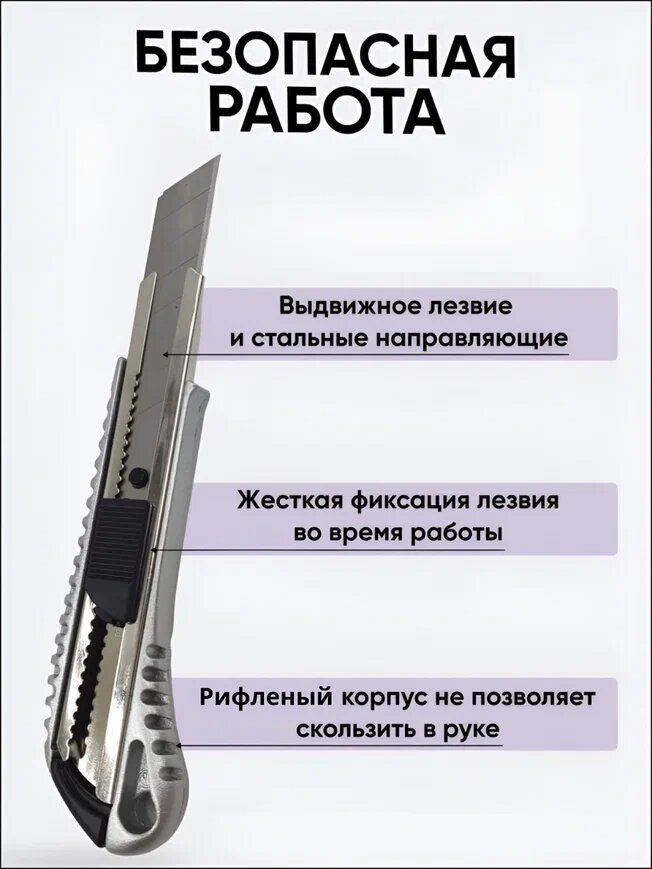 Отзывы на Нож канцелярский AXLER, строительный технический универсальный, с выдвижным лезвием 18 мм, металлический корпус, с фиксатором, серебристый