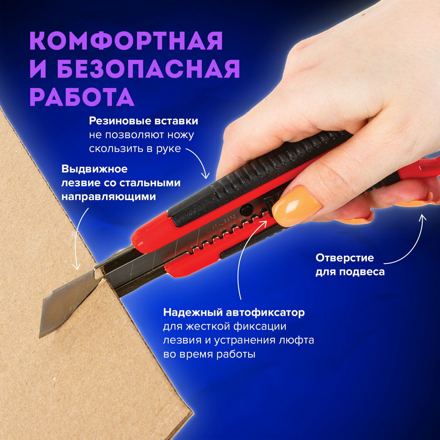 10 цен на Нож канцелярский Brauberg 18 мм, "Universal", 3 лезвия в комплекте, автофиксатор, черно-красный