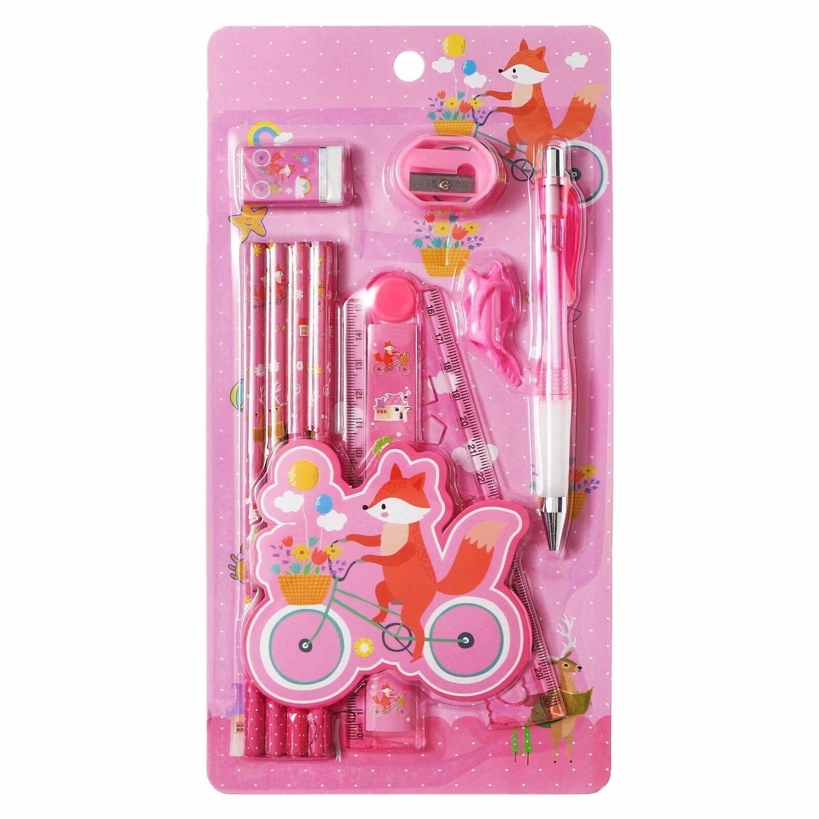 10 цен на Набор канцелярский Calligrata 9 предметов, 4 чернографитных карандаша, точилка, ластик, линейка, ручка, насадка-тренажер, розовый
