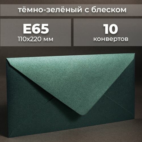 10 цен на Набор конвертов для денег Е65 (110х220мм)/ Конверты подарочные из дизайнерской бумаги темно зеленый с блеском 10 шт.