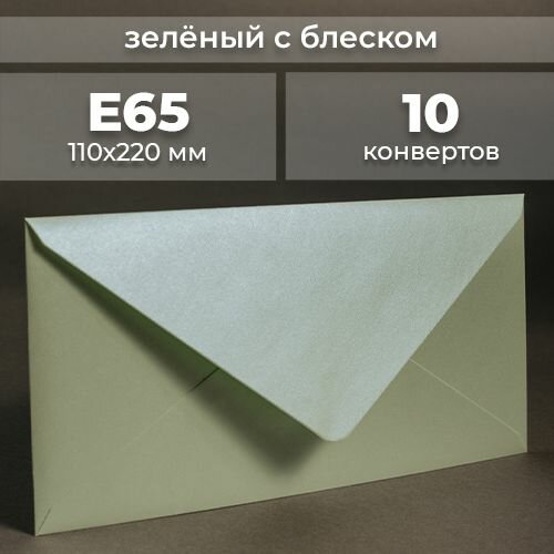 Набор конвертов для денег Е65 (110х220мм)/ Конверты подарочные из дизайнерской бумаги зеленый блестящий 10 шт. информация: