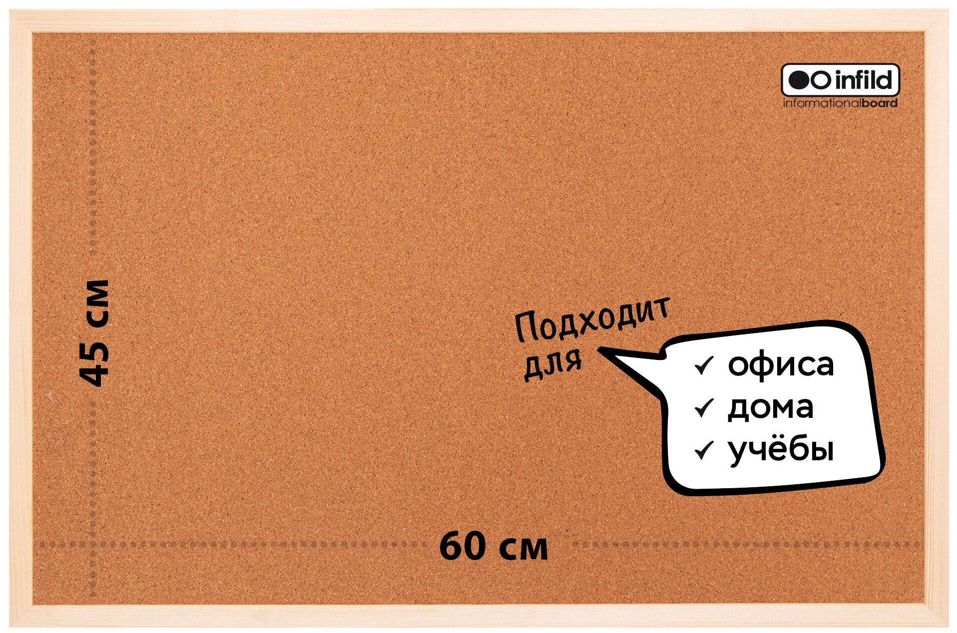 Доска с пробковым покрытием эконом 45х60 см в деревянном профиле, INFILD информация: