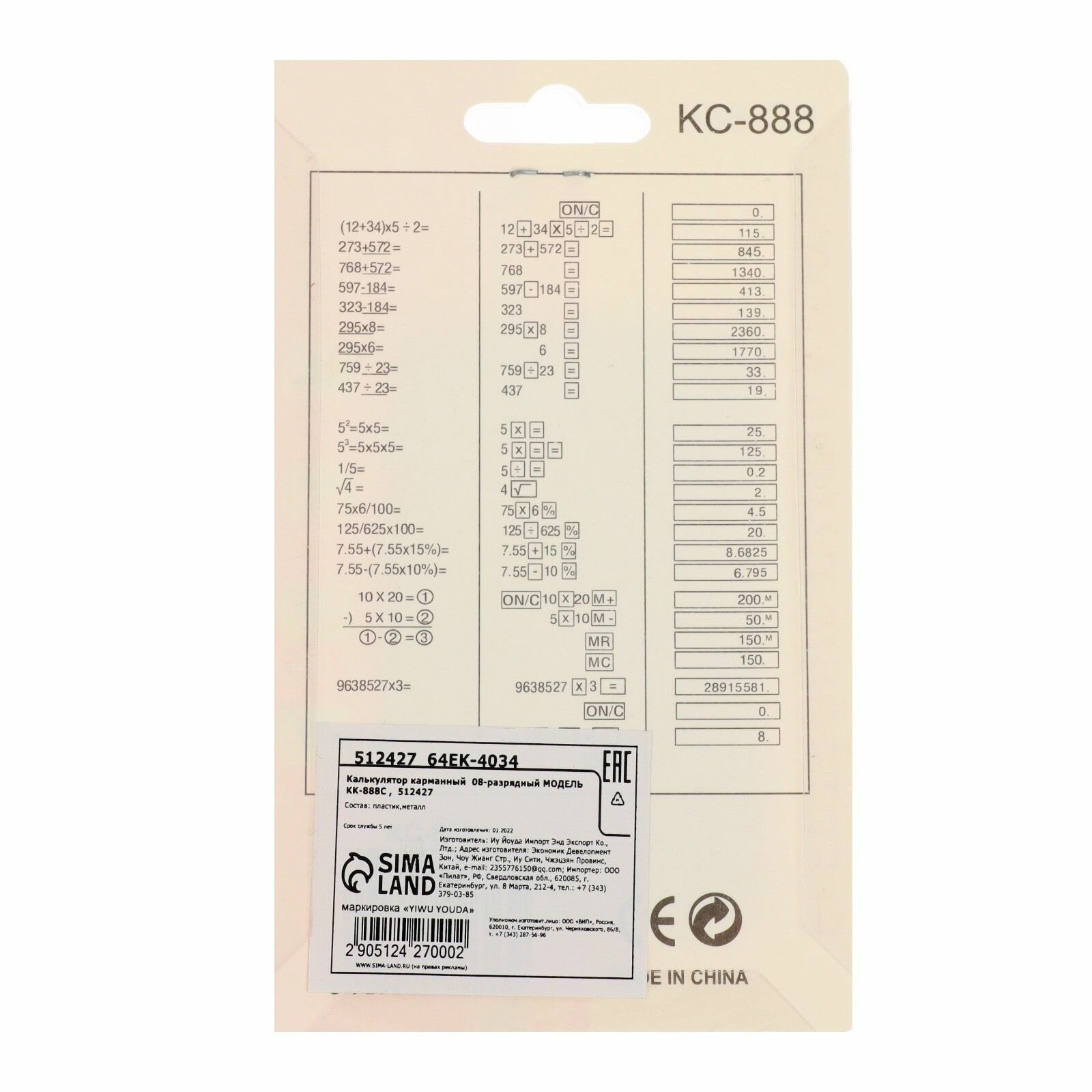 Калькулятор карманный, 8-разрядный, KD-568А, вид калькулятора: карманный