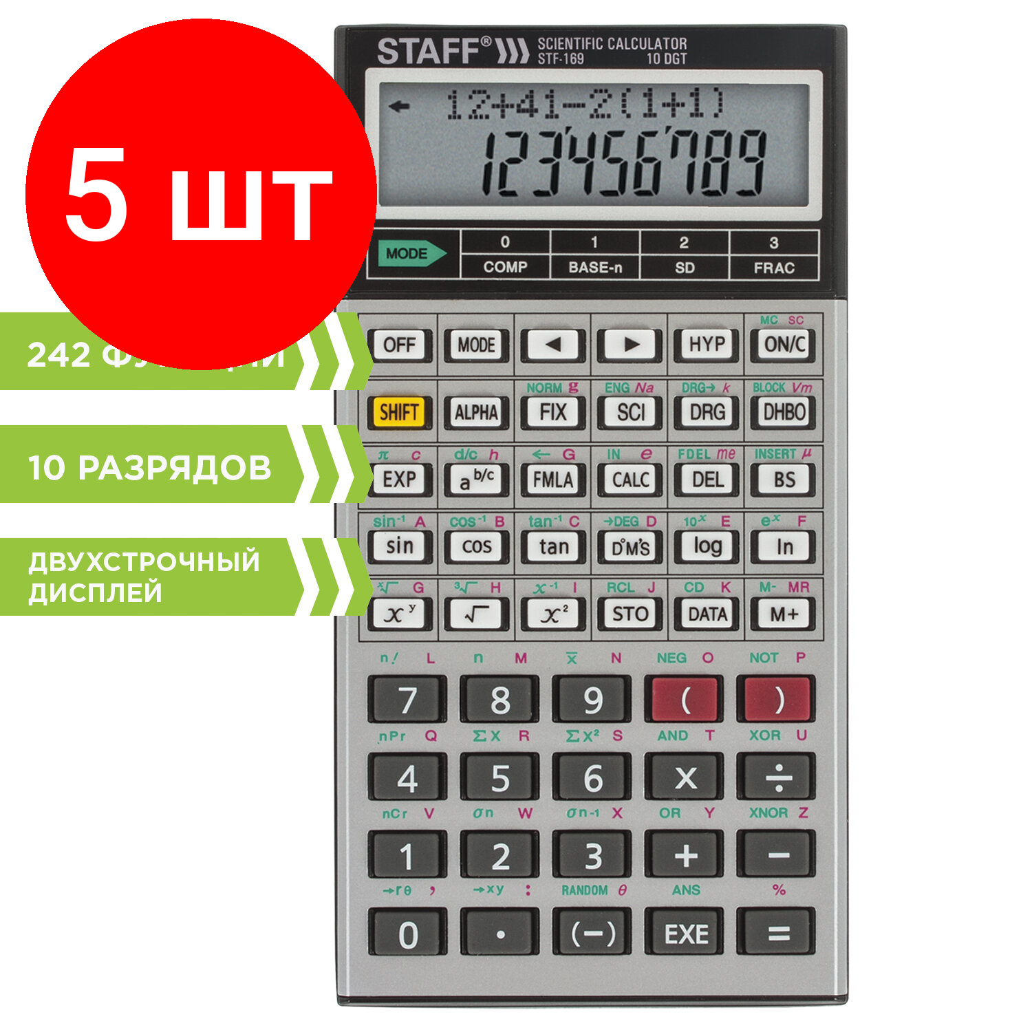 Отзывы на Комплект 5 шт, Калькулятор инженерный двухстрочный STAFF STF-169 (143х78 мм), 242 функции, 10+2 разрядов, 250138