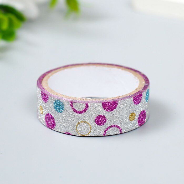 10 цен на Клейкая лента декоративная пластик "Рисунки блеск" 1,5 см 3 метра микс(10 шт.)