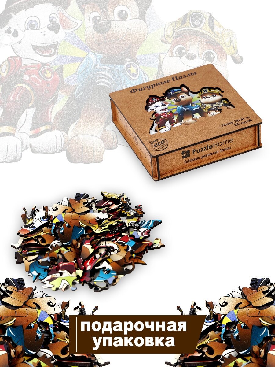 Пазл деревянный фигурный объемный щенята 100 элементов в форме животных для детей и взрослых PuzzleHome в подарочной коробке информация: