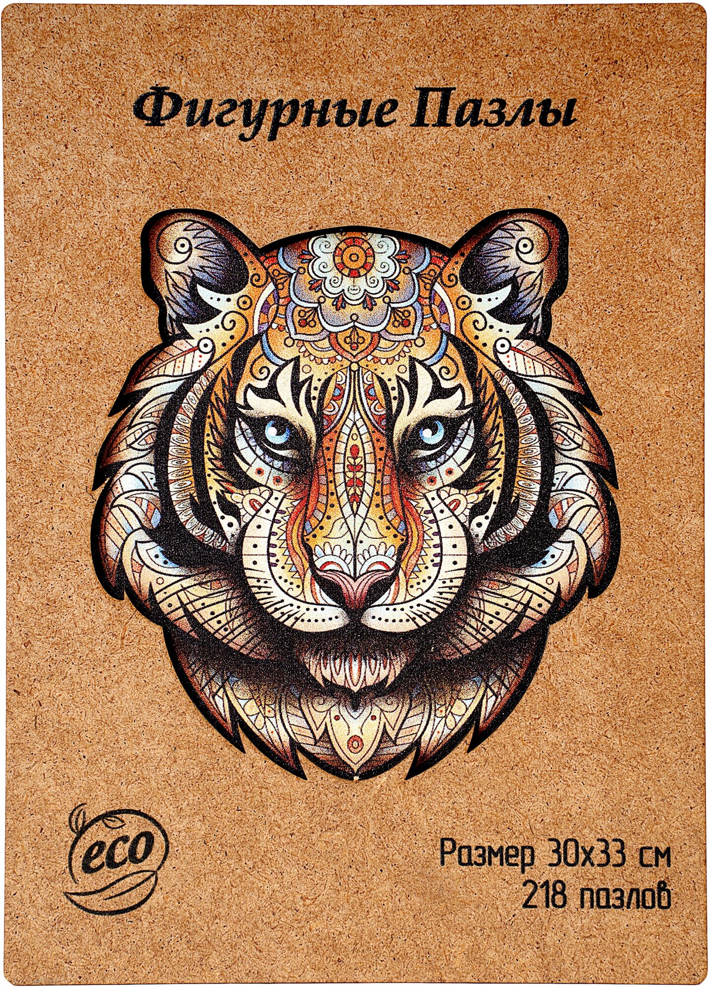 Пазл деревянный фигурный объемный тигр 218 элементов в форме животных для детей и взрослых PuzzleHome в большой коробке информация: