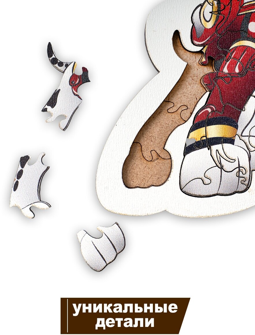 Пазл деревянный фигурный объемный красная собачка 21 элемент в форме животных для детей и взрослых PuzzleHome на подложке